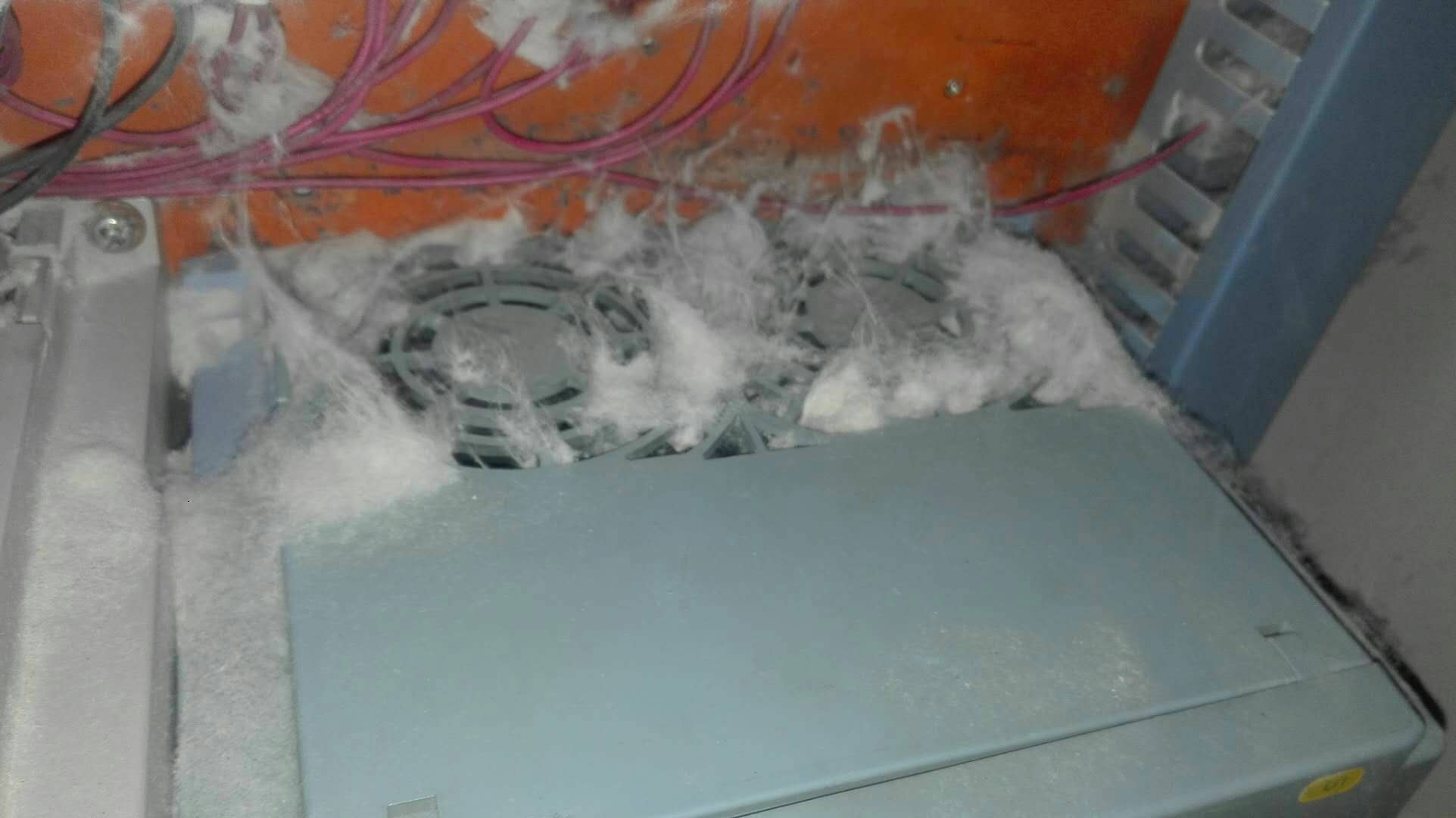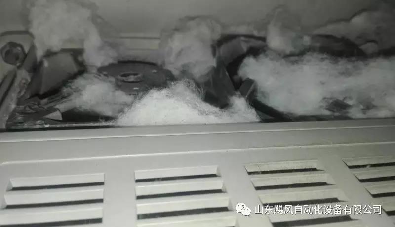 查詢變頻器報警記錄大部分報的都是過熱,仔細分析,罪魁禍首就是棉絮,下面的現象大家不陌生吧。